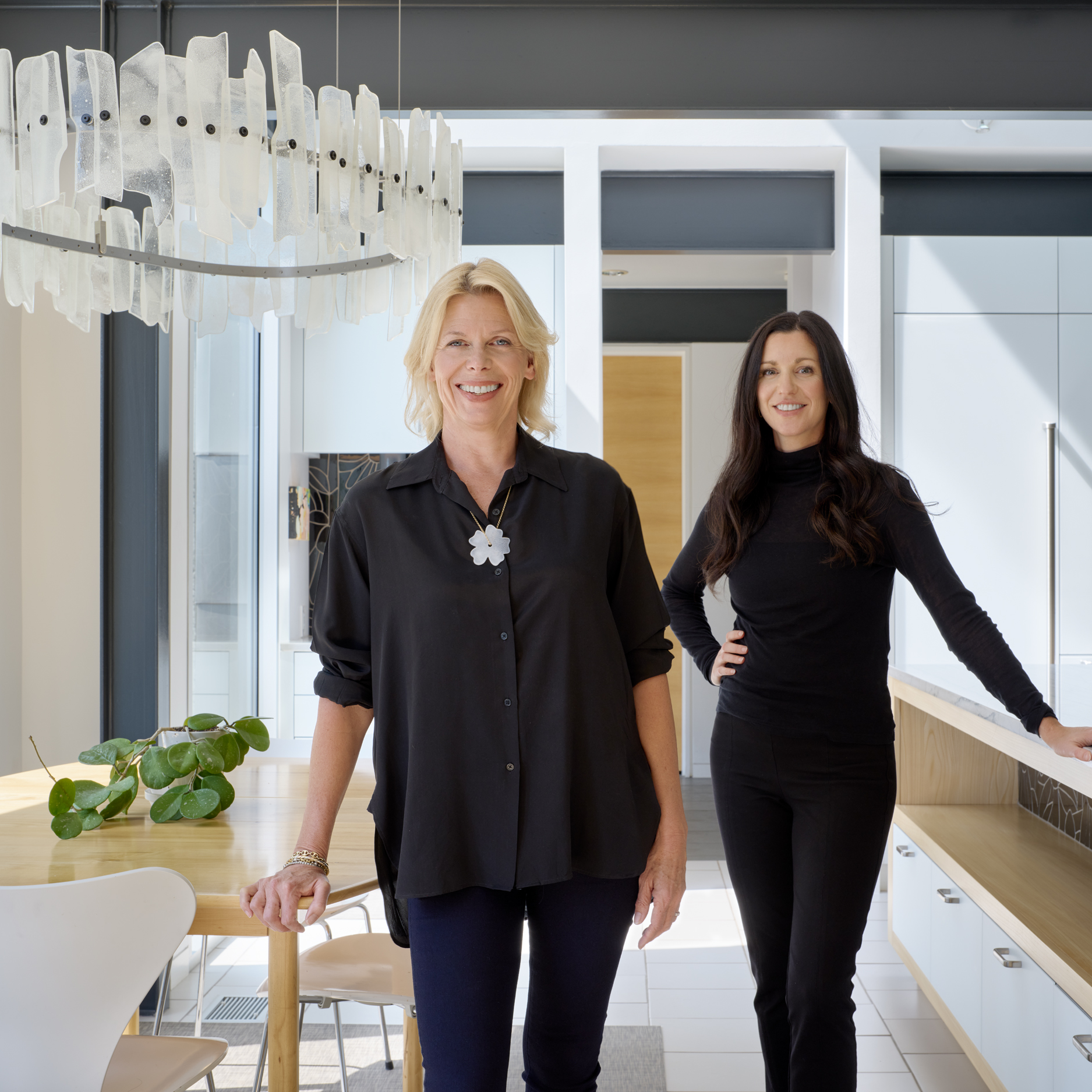 Sandra Gross and Leah Busch Rockel have collaborated in art and design for over 15 years, each bringing a distinct creative background to the medium of glass. Sandra is a sculptor who first discovered glass while exploring transparency in graduate school, an exploration that led to a lasting fascination with the possibilities of kiln-formed glass. Leah comes from painting and drawing, with a deep love of surface design, pattern, and composition.