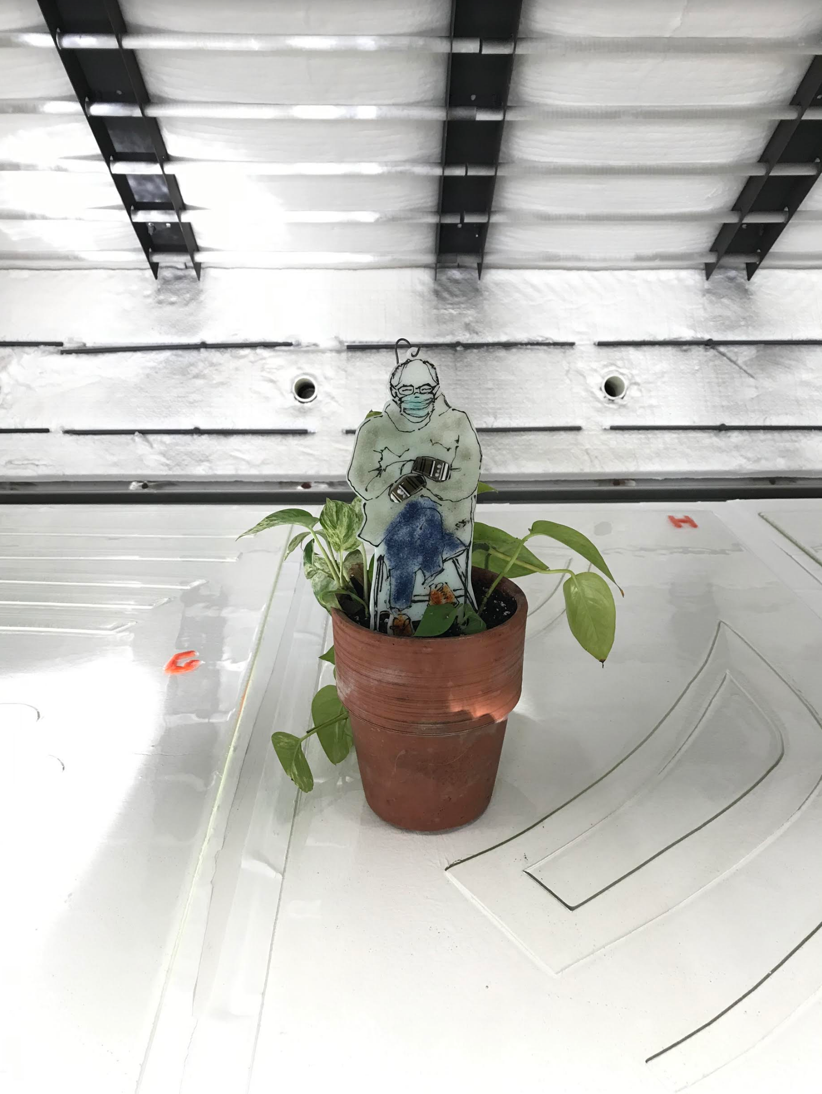 Feel the Bern! Enjoy your own handmade fused glass garden stake complete with Bernie's iconic mittens.